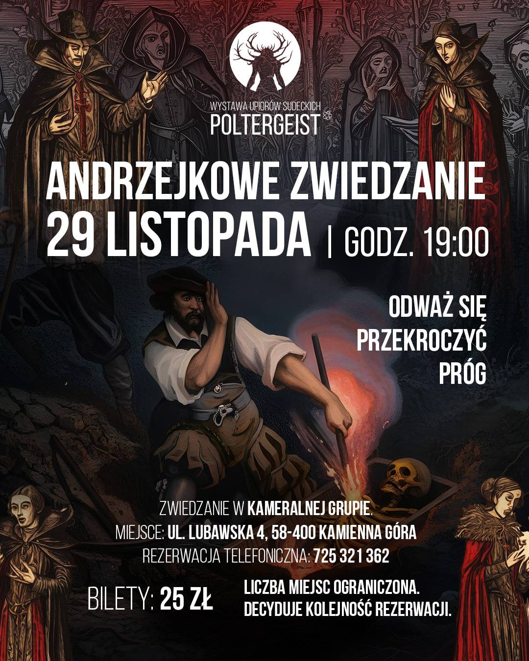 Nasz nowy Partner - Wystawa Upiorów Sudeckich Poltergeist zaprasza na wieczorne, andrzejkowe zwiedzanie – wydarzenie, które w wyjątkowy sposób łączy historię, etnografię i fascynujący świat sudeckiego folkloru.