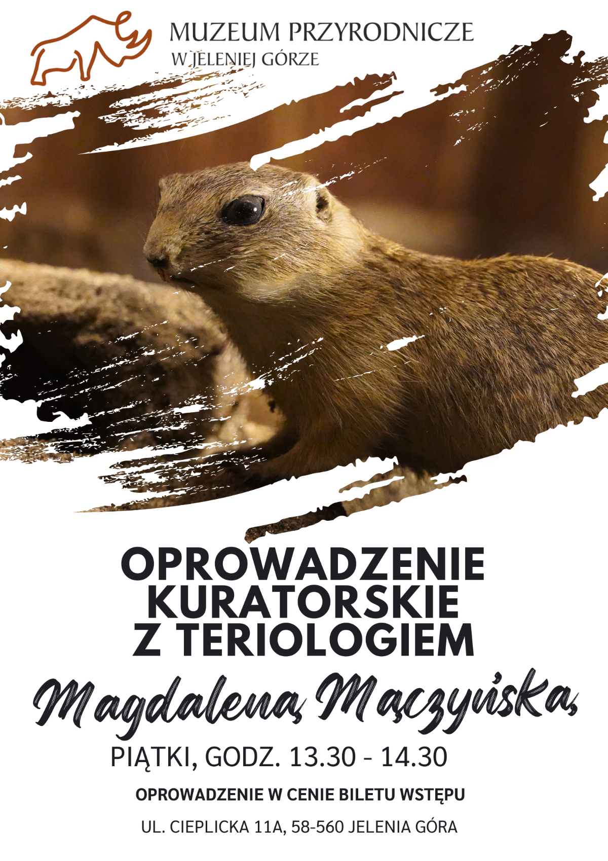 Oprowadzenie kuratorskie z teriologiem/pracownikiem Działu Przyrody Magdaleną Mączyńską. Cykliczne piątkowe spotkania z opiekunem eksponatów ssaków to wprowadzenie do świata ssaków: od powszechnie znanych i spotykanych w naszym kraju po rzadkie i skryte gatunki możliwe do poznania zwykle tylko w muzealnych warunkach. Od myszy po słonia – każdy znajdzie coś ciekawego dla siebie.