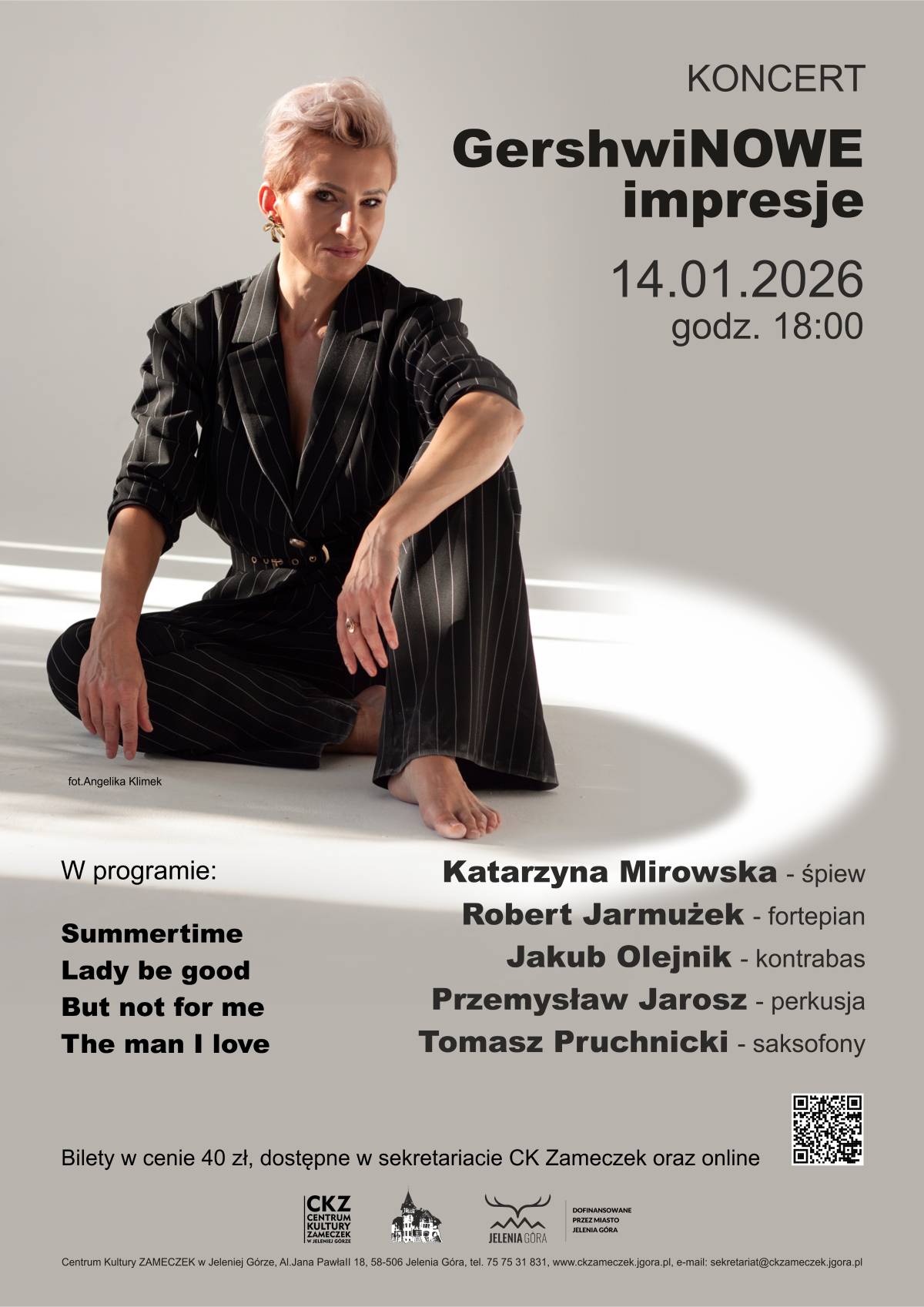 To program poświęcony twórczości legendarnego kompozytora George’a Gershwina, w którym nowe przeplata się ze starym. Klasyczne melodie ubrane w nowoczesne, nietuzinkowe rytmy i brzmienia. Każdy znajdzie tu coś dla siebie. Koneserzy artyzmu Georga Gershwina bez problemu rozpoznają melodie ulubionych utworów, takich jak: „The Man I Love”, „But not for me”, „Lady be good” czy „Summertime”.Improwizacja wokalna i instrumentalna oraz nowoczesne harmonie usatysfakcjonują z pewnością nie tylko fanów muzyki jazzowej ale wszystkich, którzy cenią piękne brzmienia znanych i mniej rozpoznawalnych amerykańskich evergreenów. GershwinNOWE impresje to przestrzeń gdzie piosenka kolaboruje z jazzem a wszystko to za sprawą oryginalnych aranżacji Roberta Jarmużka i Katarzyny Mirowskiej oraz współpracy fantastycznych muzyków: Jakuba Olejnika, Przemysława Jarosza i Tomasz Pruchnickiego.