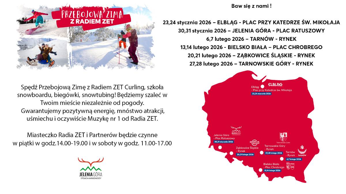 Pod koniec stycznia Jelenia Góra stanie się zimowym centrum rozrywki. W dniach 30 i 31 stycznia 2026 roku na Placu Ratuszowym odbędzie się wydarzenie „Przebojowa Zima z Radiem ZET”, które połączy sportowe emocje, aktywność na świeżym powietrzu oraz dobrą muzykę.