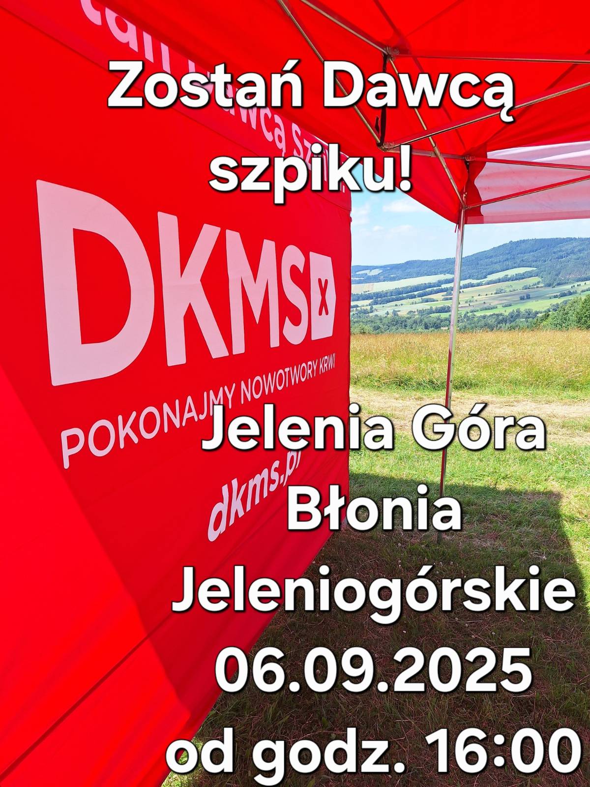 Już w najbliższą sobotę, 6 września 2025 r., na Błoniach Jeleniogórskich odbędzie się akcja rejestracyjna potencjalnych dawców szpiku.
