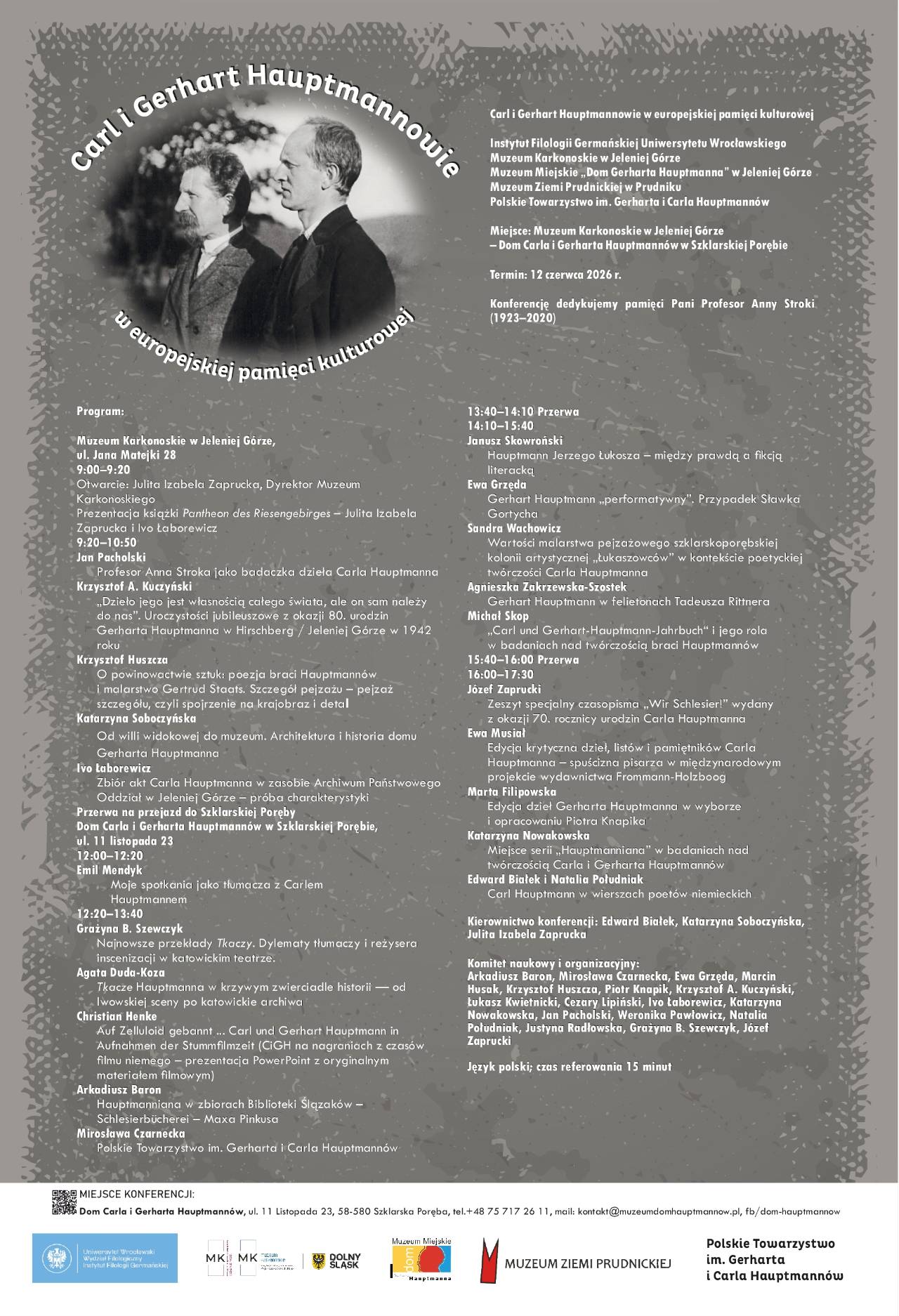 Nadchodząca konferencja naukowa to prestiżowe spotkanie badaczy i miłośników twórczości braci Hauptmannów, zorganizowane wspólnie przez Instytut Filologii Germańskiej Uniwersytetu Wrocławskiego oraz kluczowe muzea i stowarzyszenia regionu. Wydarzenie zostało dedykowane pamięci wybitnej uczonej, prof. Anny Stroki (1923–2020).