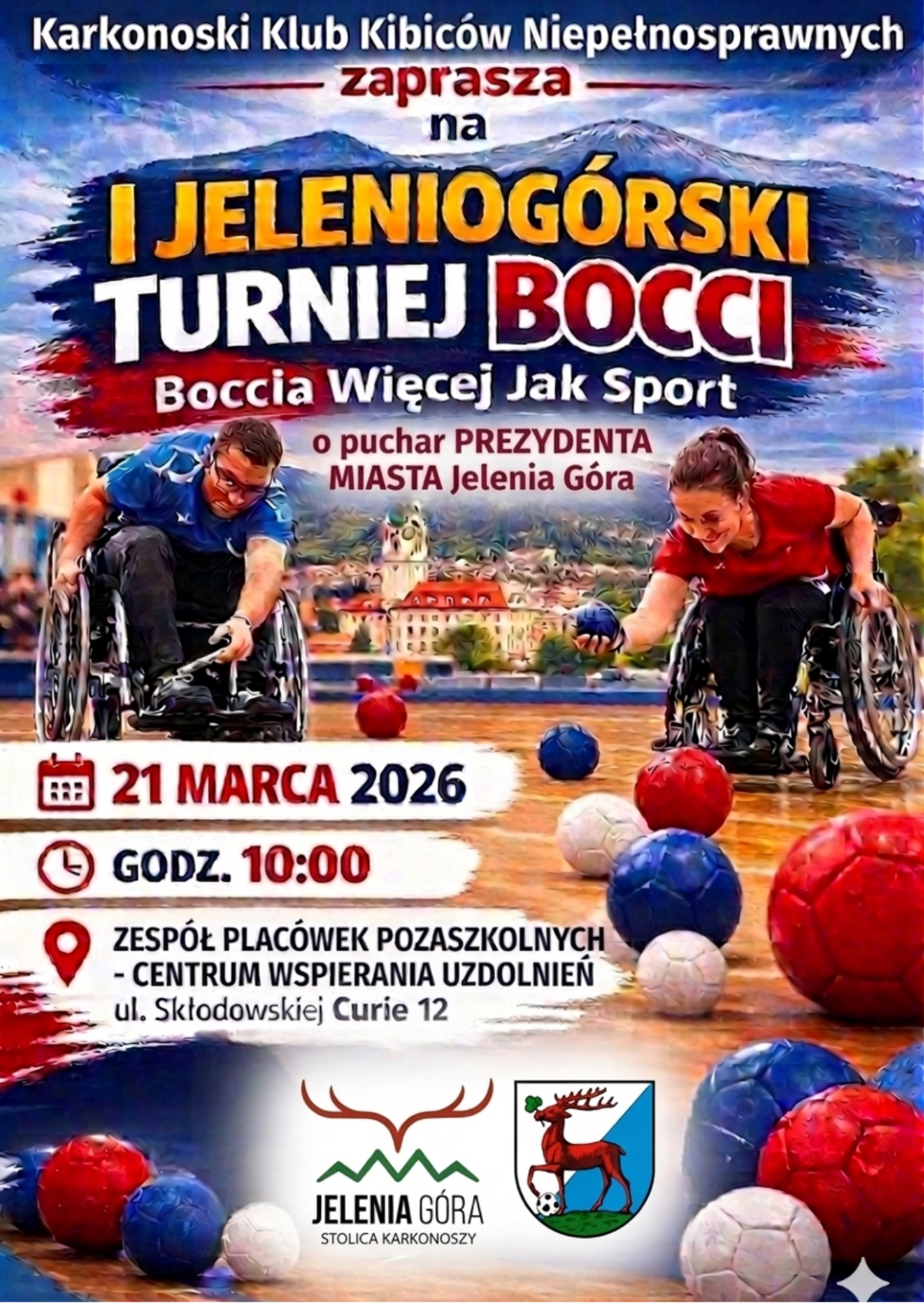 Karkonoski Klub Kibiców Niepełnosprawnych zaprasza na I Jeleniogórski Turniej Bocci - Boccia Więcej Jak Sport o puchar Prezydenta Miasta Jelenia Góra.