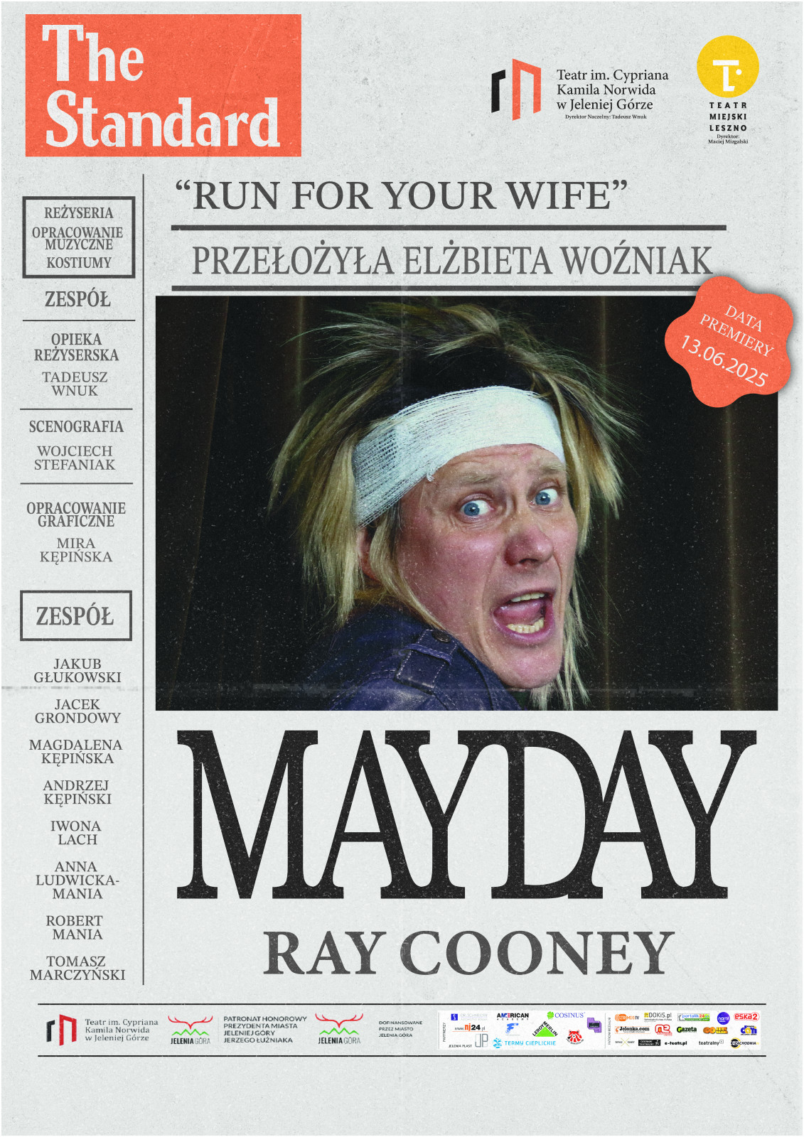 Kiedy życie Johna Smitha zaczyna się sypać przez pechowy wypadek, jego starannie ukrywane podwójne życie wychodzi na jaw w najmniej odpowiednim momencie. Lawina kłamstw rusza z pełną prędkością, a widzowie nie mogą powstrzymać śmiechu!„Mayday” to mistrzowska komedia pomyłek autorstwa Raya Cooneya – króla farsy teatralnej. Błyskotliwe dialogi, brawurowe tempo i absurdalne sytuacje gwarantują wieczór pełen niekontrolowanego śmiechu.